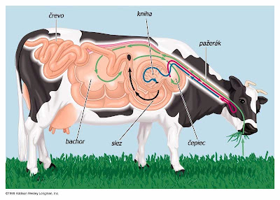 Bylinožravec (ovca) má asi 27-násobnú dĺžku tráviaceho traktu ako je dĺžka jeho tela a 25-násobnú dĺžku tenkého čreva ako je dĺžka jeho tela.